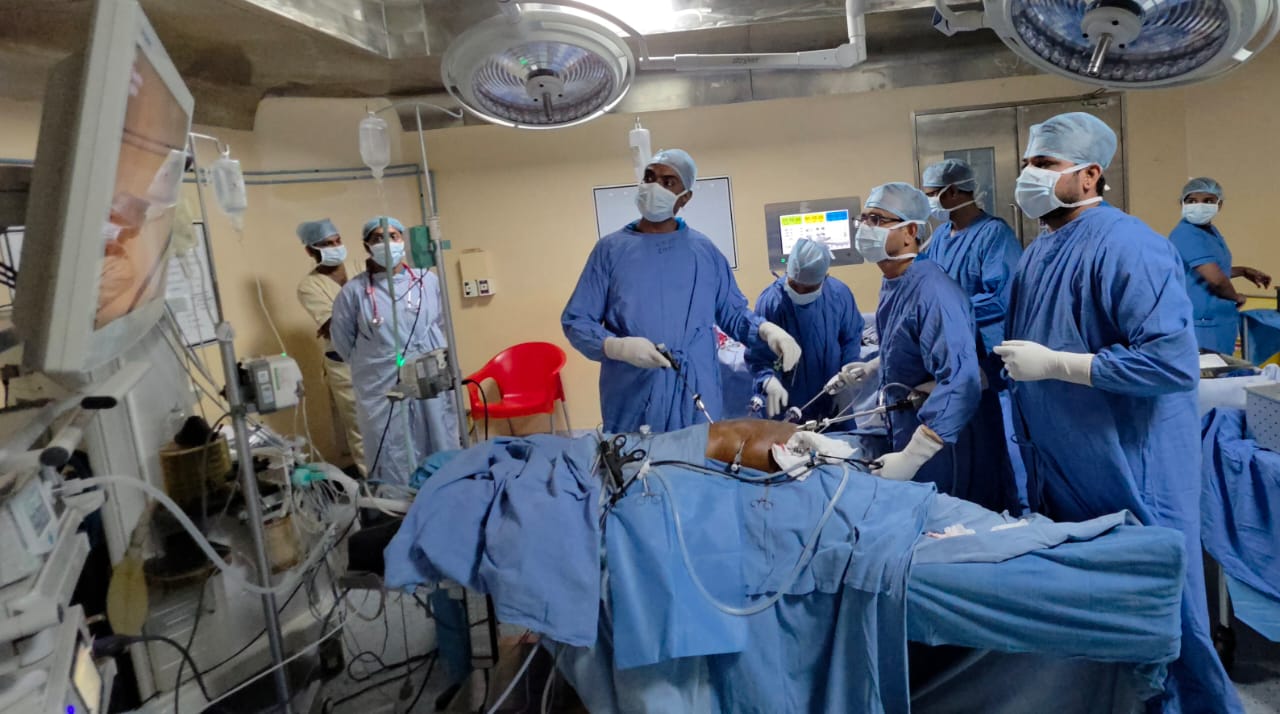 Despite her poor health condition, the patient approached CARE Hospitals seeking help. After a detailed evaluation and careful preparation, the Surgical Gastro team lead by Dr Bhupathi Rajendra Prasad, Senior Surgical Gastroenterologist and Robotic Surgeon, decided to take up the challenge and performed a Laparoscopic-assisted Whipple’s surgery, one of the most complex abdominal cancer surgeries. Such high-risk cancer surgery done through keyhole techniques is rare, and the patient’s recovery within five days is considered exceptional.
